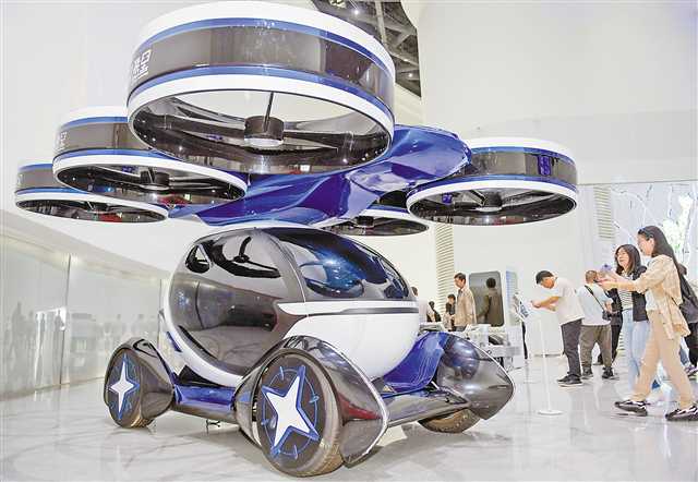 图为10月11日,北京理工大学重庆创新中心,展示自主开发、研制的分体式飞行汽车。(记者 张锦辉 摄/视觉重庆)