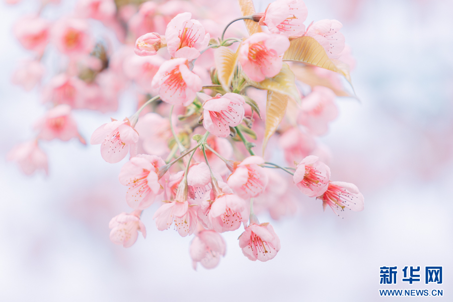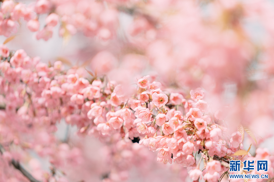 开满枝头的冬樱花。新华网 耿骏宇 摄