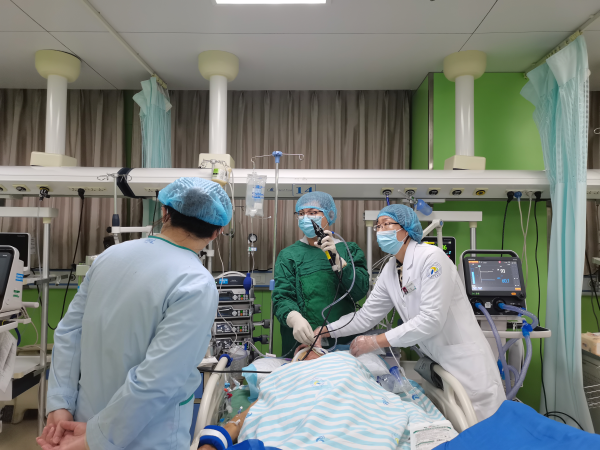 “组团式”帮扶医疗人才张喜红主任医师指导经鼻气管镜操作。