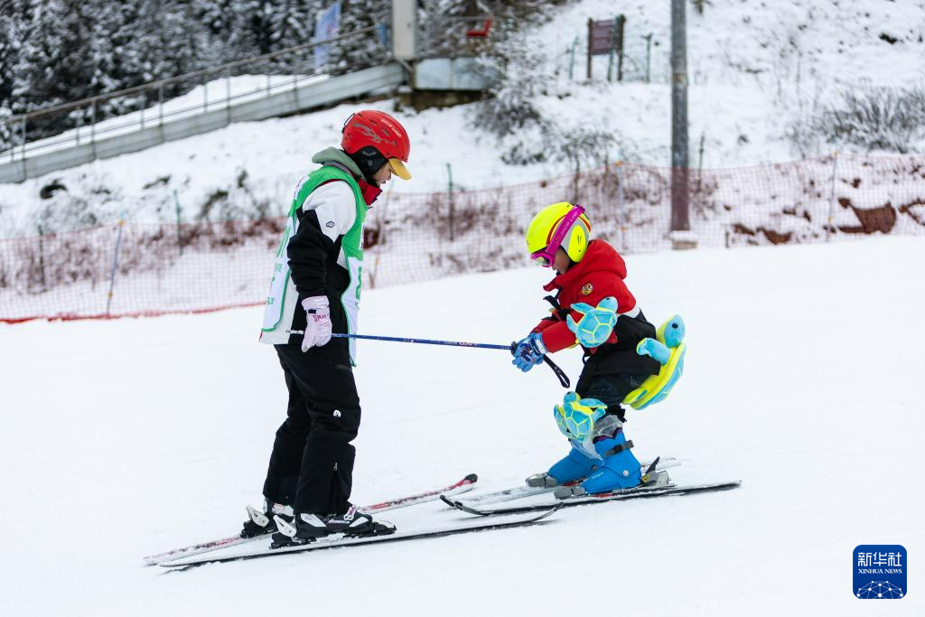 1月26日,小朋友在重庆市石柱土家族自治县的冷水国际滑雪场滑雪。新华社记者 储加音 摄