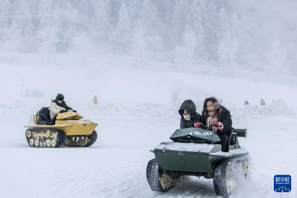 1月25日,在重庆市丰都县的南天湖国家级旅游度假区,游客在冰雪乐园内体验“雪地坦克”项目。新华社记者 储加音 摄