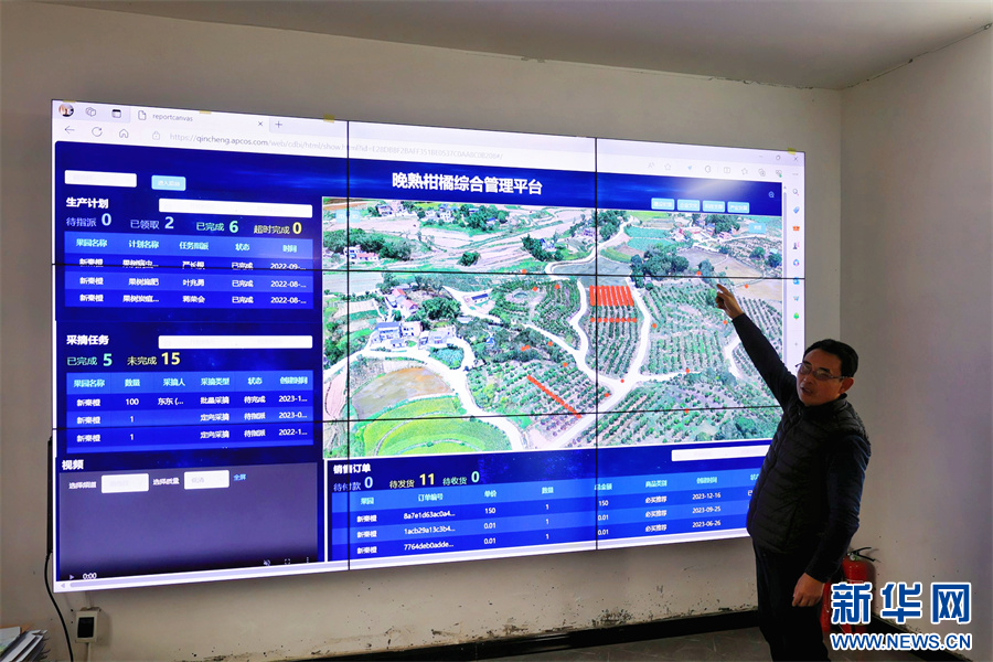 柑橘科技专家大院内,秦兆华看着大屏幕上晚熟柑橘综合管理平台显示着当下的土壤、气候等环境数据,自信满满:“今年又是一个丰收年。”