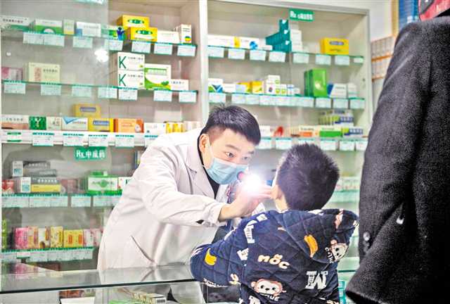 二月四日,江津区先锋镇麻柳村,村医李小鹏在村卫生室为生病的小朋友检查身体。记者 崔力 摄\视觉重庆