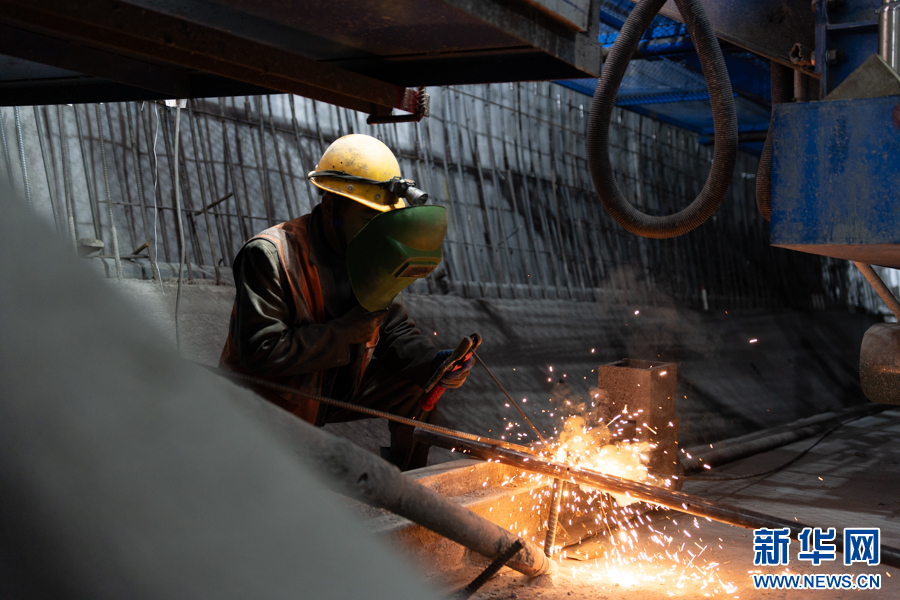 一名工人在东大巴山隧道内进行电焊作业。新华网 耿骏宇 摄