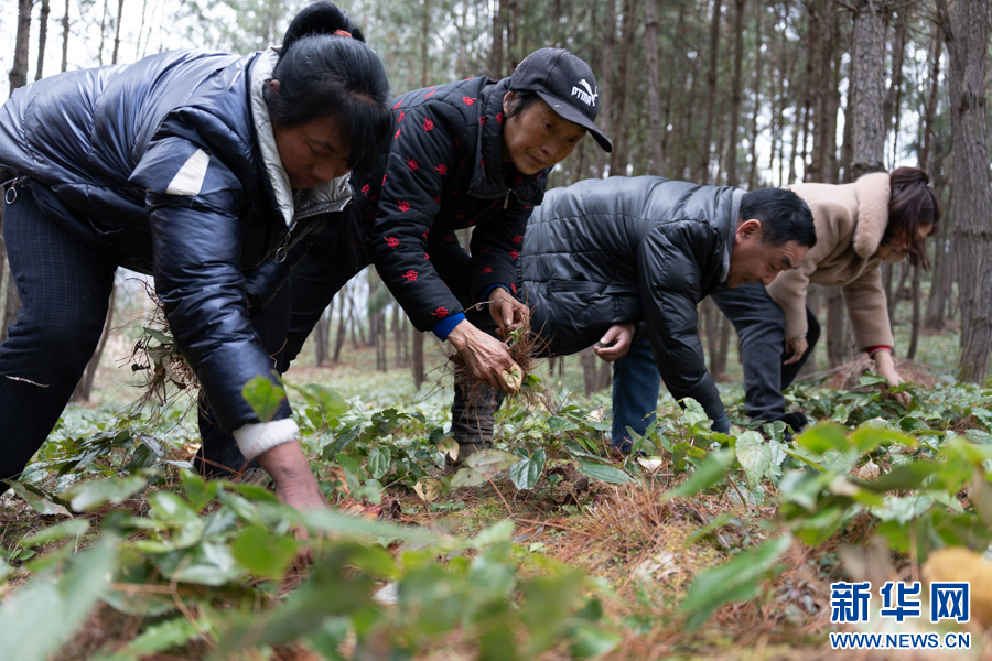 农历小年前夕,村旁利用林下空间开辟的箭叶淫羊藿种植基地里,李仕琼小心翼翼地为这款中药材拔除杂草。