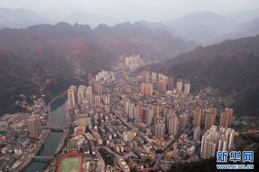 俯瞰晨光中的城口县城。新华网 耿骏宇 摄