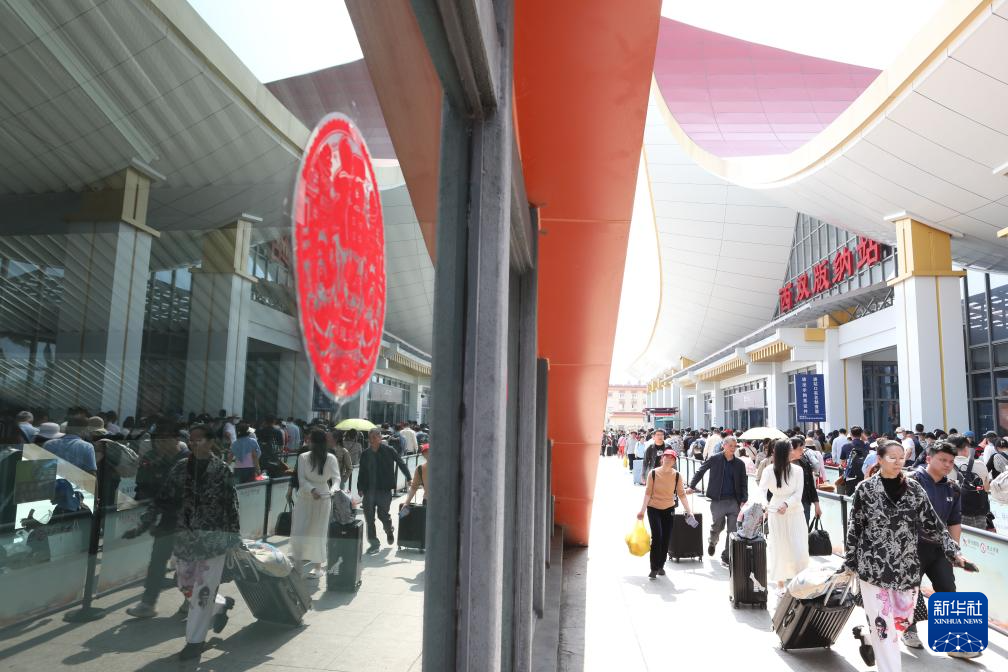 2月16日,旅客在云南西双版纳站进站乘车。新华社发(李云生摄)