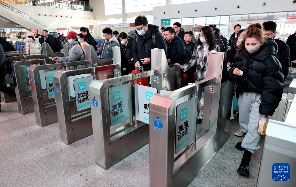 2月16日,旅客在山东枣庄站进站乘车。新华社发(孙中喆摄)