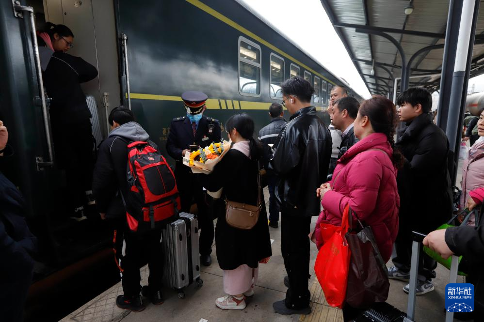 2月16日,旅客在贵州凯里站进站乘车。新华社发(吴吉斌摄)