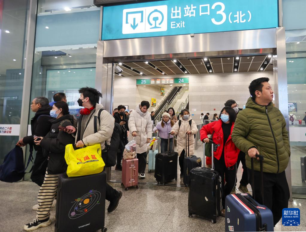 2月16日,旅客在湖北武昌站准备出发。新华社发(赵军摄)