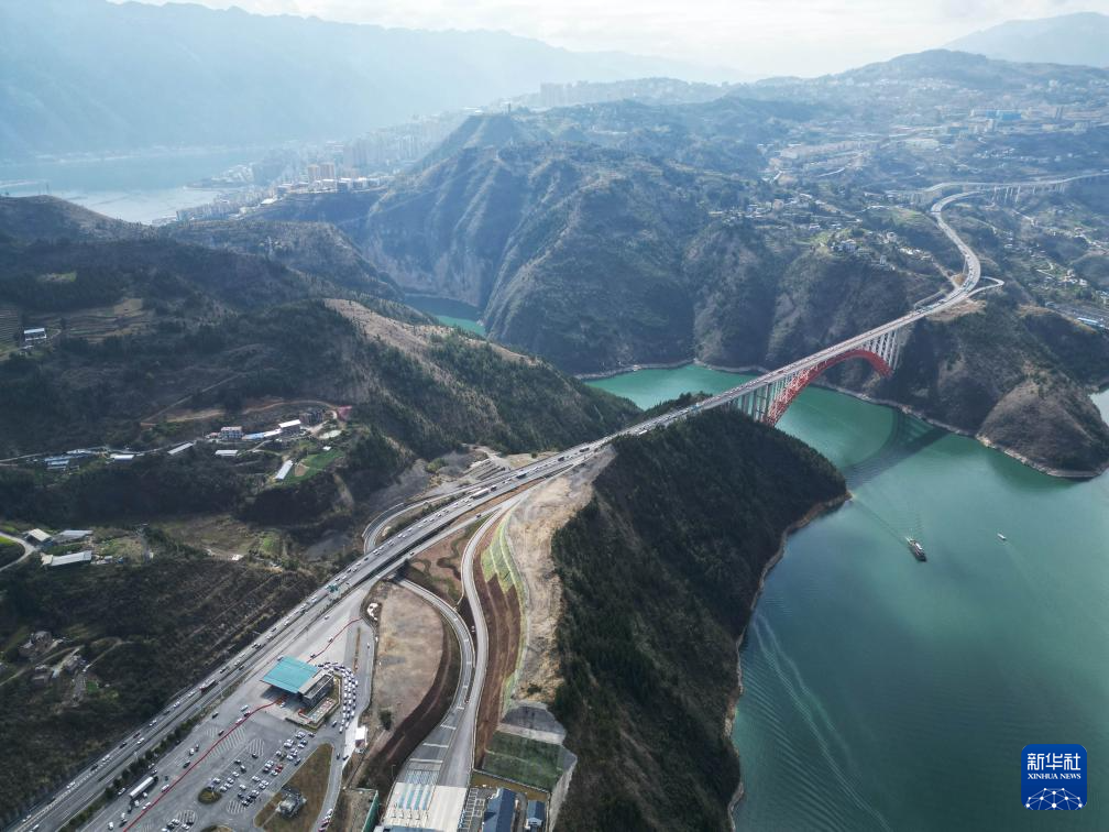 2月16日,车辆行驶在重庆市巫山县境内的大宁河特大桥上(无人机照片)。新华社发(王忠虎摄)