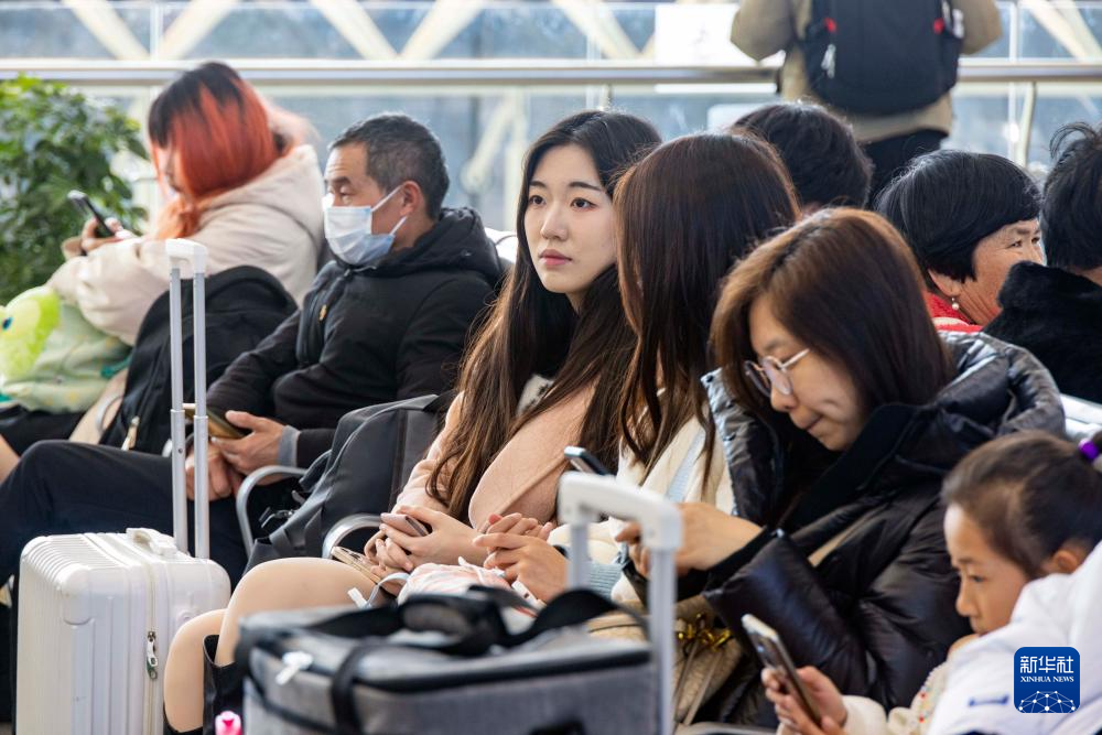 2月16日,旅客在江苏泰州站候车。新华社发(汤德宏摄)