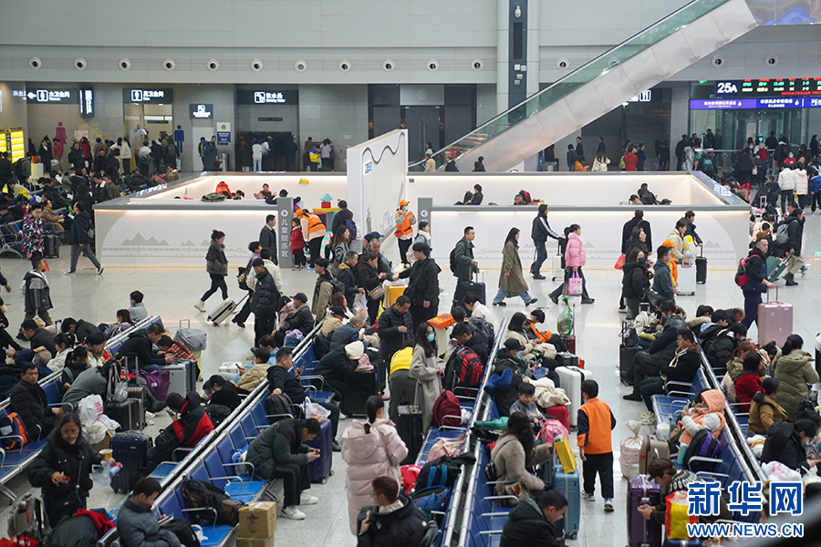 2月17日,重庆火车站候车厅内等待出行的旅客。新华网发