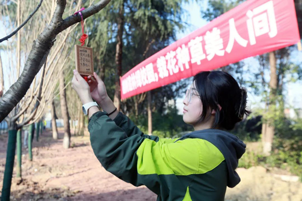 活动最后,大家纷纷在植树心愿牌上写下心愿,期待在来年温暖的春风里,共同观赏一场属于西政大家庭的浪漫樱花。