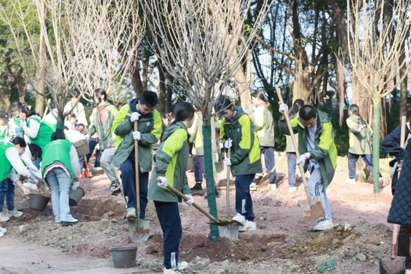 3月11日下午,西南政法大学党委书记樊伟、校长林维,重庆市两江中学校·西政附中党委书记郑睿、副校长樊建华,西政附小党支部书记童代兵,三所学校教职工代表以及学生志愿者共同在西南政法大学渝北校区开展了义务植树活动。