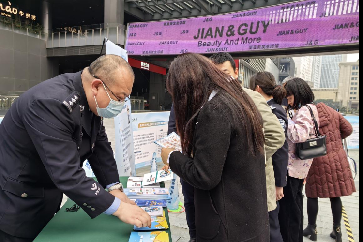重庆市公安局经侦总队民警在向市民普及防范金融犯罪相关知识。(重庆三峡银行供图)