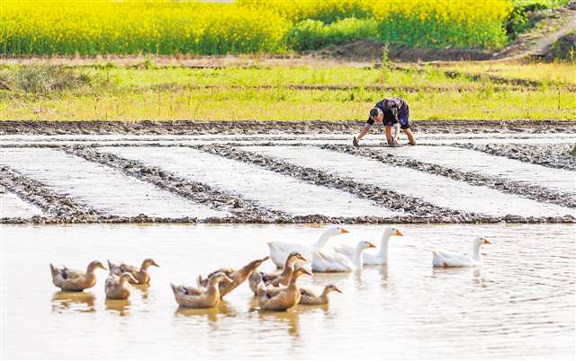春分临近,气温回升,该区各乡镇农民抢抓农时忙碌在田间地头,呈现出一派人勤春来早的景象。(特约摄影 瞿明斌/视觉重庆)
