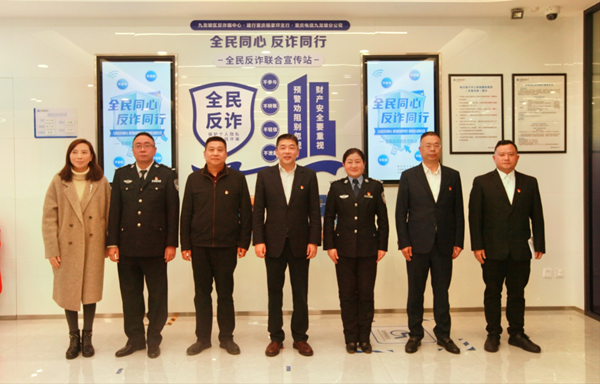 3月19日,重庆市第五个“全民同心 反诈同行”全民反诈联合宣传站在建行重庆杨家坪九龙园支行正式揭牌启用。