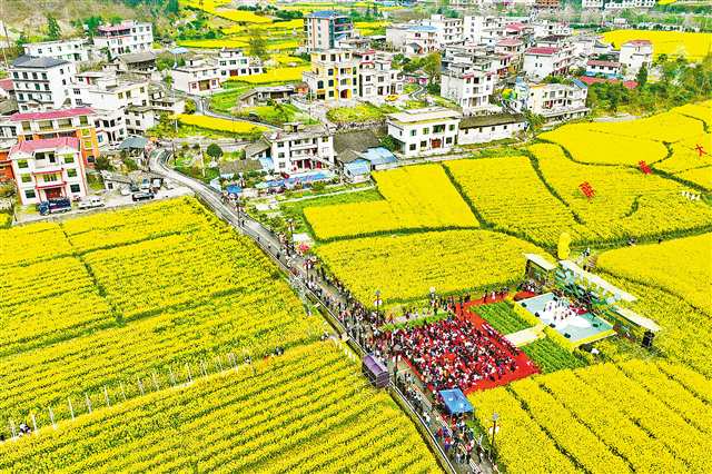 3月23日,黔江区小南海镇和湖北省咸丰县大路坝区联合举办的渝鄂边区第二届油菜花旅游观光活动在两地接合部举行。此次活动以花田音乐会为主,旨在用文艺助力乡村振兴。活动现场,文艺工作者表演了丰富多彩的文艺节目,吸引了众多两地游客参加。