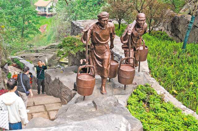 4月10日,江北区北滨路,巴人汲水公园开园。公园以艺术再创造方式,依山就势,还原了徐悲鸿名作《巴人汲水图》的场景。记者 崔力 摄/视觉重庆