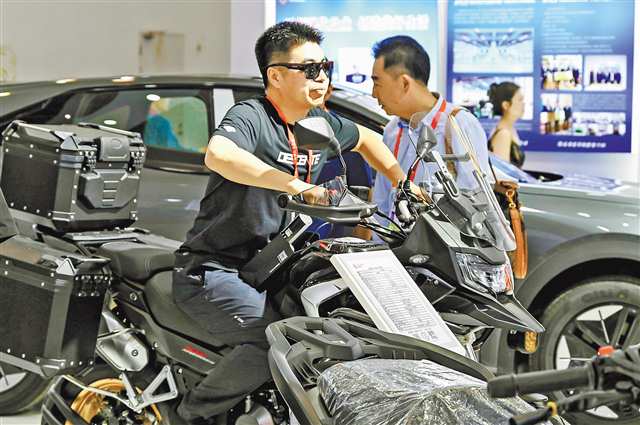 与汽车邻近的展区,“重庆造”摩托车也吸引了不少观众的眼球。