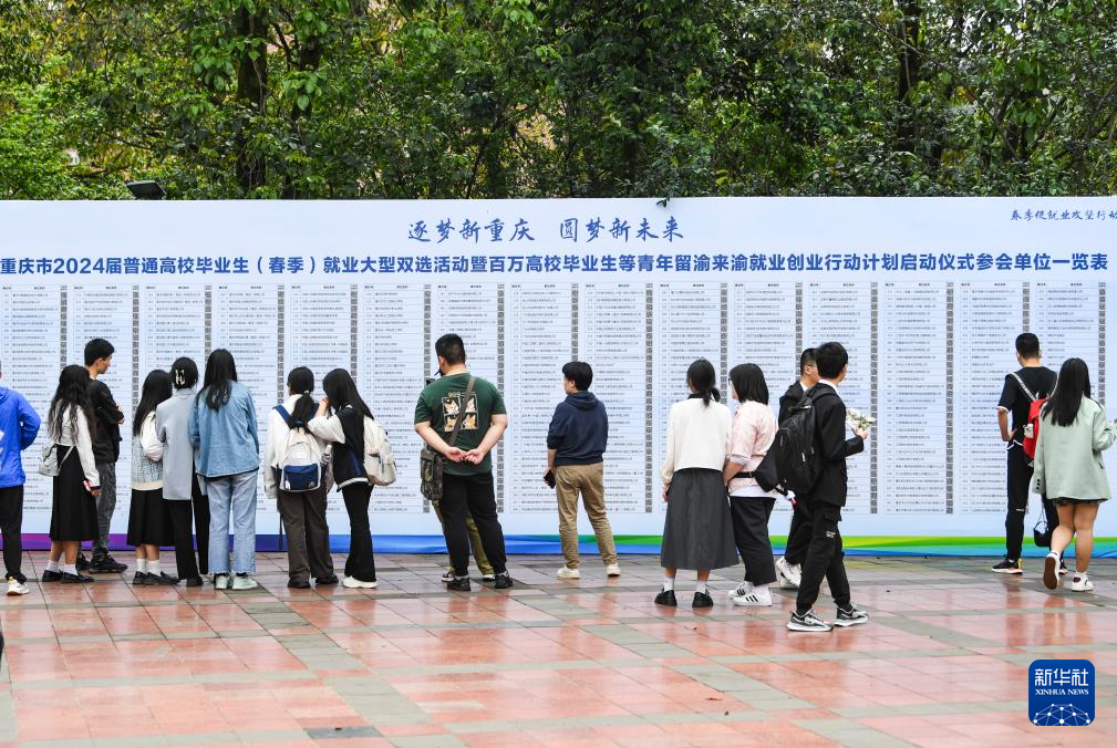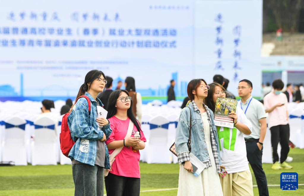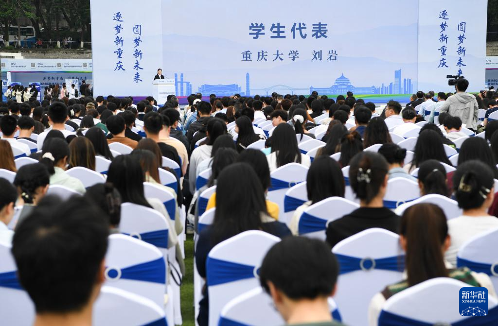 这是4月17日拍摄的重庆市2024届普通高校毕业生(春季)就业大型双选活动暨百万高校毕业生等青年留渝来渝就业创业行动计划启动仪式现场。