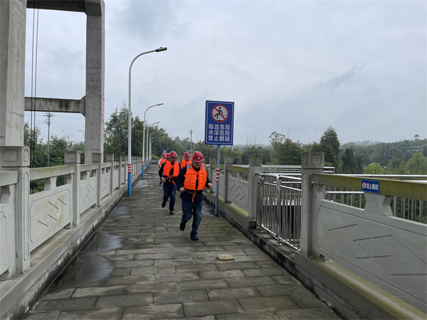 演练过程中,渝山公司迅速启动防汛响应机制,多个部门协同作战,按照既定应急程序进行操作。防汛警报拉响后,抢险人员迅速集结,通知下游村社组织群众撤离、启用备用电源、开启闸门泄洪、启动巡逻艇开展水上救援等。