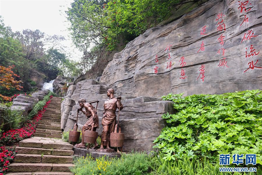 巴人汲水公园以艺术再创造方式,依山就势,将徐悲鸿名作《巴人汲水图》的画中景观带入现实。新华网发(熊鹏 摄)