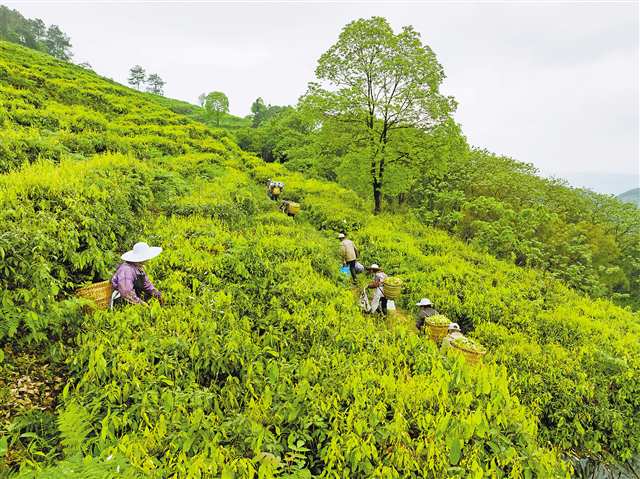 4月21日,北碚区天府镇文星村,茶农在采收缙云甜茶,当地最早一批甜茶预计5月初可以上市销售。