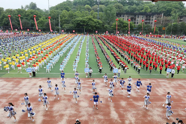 1400余名学生齐跳啦啦操《一起向未来》,尽显青春活力。