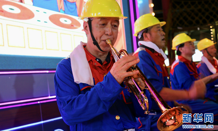 工人演奏萨克斯。新华网发(杨孝永 摄)