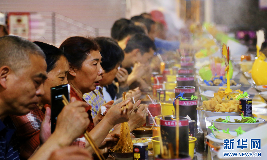 工人围坐在一起吃火锅。新华网发(杨孝永 摄)