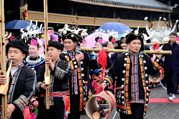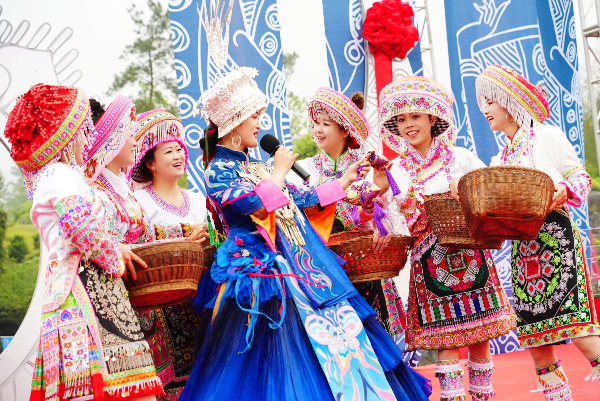 祭祀大典结束后,苗族姑娘和小伙子们接连表演了多场独具特色的文化节目,将现场气氛推向了新高。