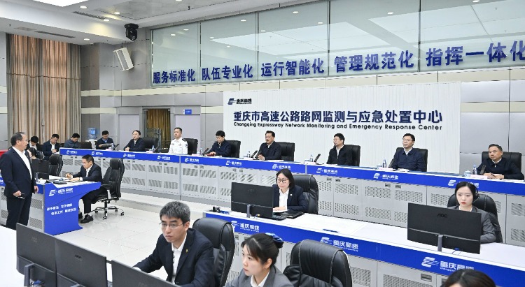 在重庆市高速公路路网监测与应急处置中心,袁家军、胡衡华检查节日期间高速公路交通运行状况,了解重要路段车流变化、隐患排查和值班值守等情况。袁家军强调,要持续增强监测预警能力,强化与数字化城市运行和治理中心贯通协同,抓好重点路段巡查监测和隐患排查,确保全覆盖无死角。要提高应急响应能力,聚焦高速公路、重要国省干道、临水临崖地带、轨道桥隧、危险化学品运输等,实时监测安全风险隐患,坚决防范遏制重大事故灾害发生。