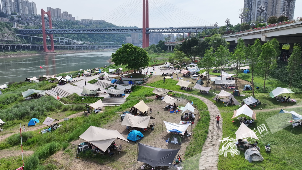 忠恕沱码头,不少市民前来露营。华龙网 杨琦 摄