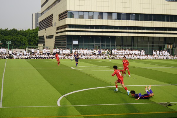 重庆市两江中学校足球队上演精彩的足球对抗赛。