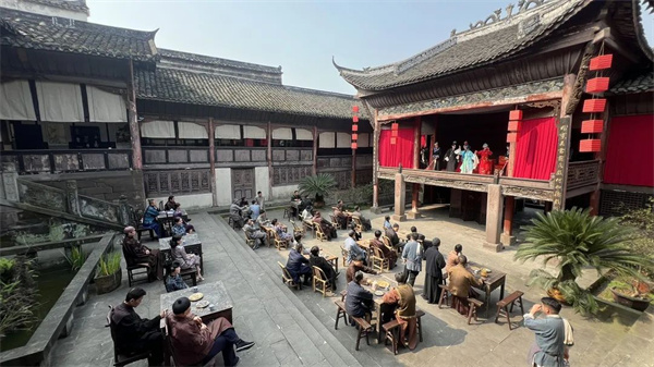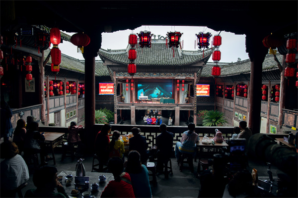 据了解,安居古城位于重庆铜梁区西北部,它依山而建,傍水而居,既有别具特色错落有致的古建筑,又有风光绮丽的山水美景。在安居古城,众多风格迥异的会馆和商行连成一片。其中的湖广会馆是湖广传统建筑与巴渝山地建筑艺术相结合的产物,它采用层层递进结构形式,高低错落,收放结合,形成三殿两进的院落。除了此次交流演出,湖广会馆还有川剧变脸、川戏、本地民俗舞蹈等表演,“五一”期间吸引了众多游客前来打卡。(胡卫民)