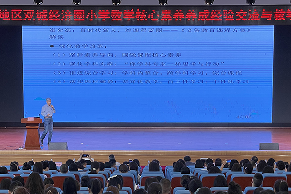 活动分为专家讲座、课例展示、经验交流三个环节。在专家报告环节,教育部西南基础教育课程研究中心主任、西南大学版小学数学主编宋乃庆教授,天津师范大学博士生导师吴立宝教授分别作题为《编修高质量的教材,促进学生核心素养发展》《核心素养的认识与实践》的专题报告,通过大量案例对理解核心素养基本内涵、主题结构化的数学课程、素养导向的教学改革等内容进行深入浅出的剖析。