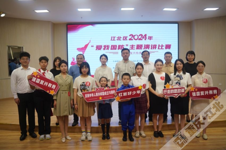 5月24日,江北区2024年“爱我国防”主题演讲比赛在区党群政治生活中心红色礼堂举行。