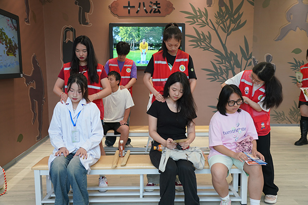 在中医养生互动体验区,学校岐黄医疗服务队用推拿、艾灸、拔火罐等项目,以及现场太极拳和八段锦表演,诠释了传统中医药增强体质、预防疾病的神奇作用。