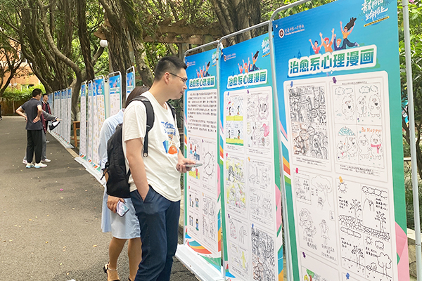 学生原创治愈系心理漫画吸引师生驻足观看。