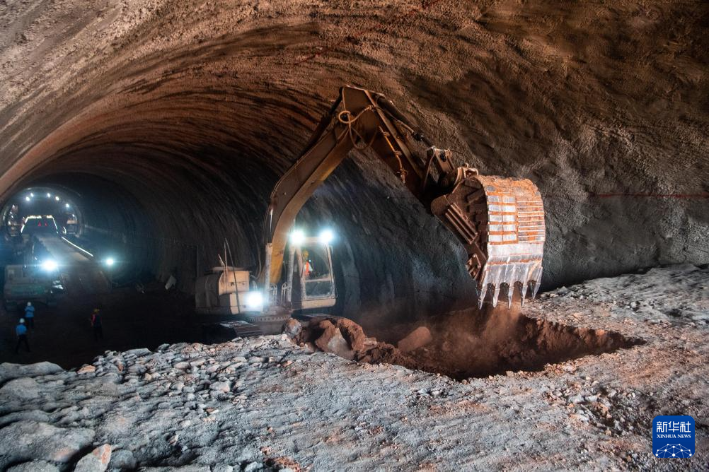 6月5日,在重庆市大足区,工人驾驶工程机械在成渝中线高铁黄连堡隧道建设现场施工作业。新华社记者 唐奕 摄