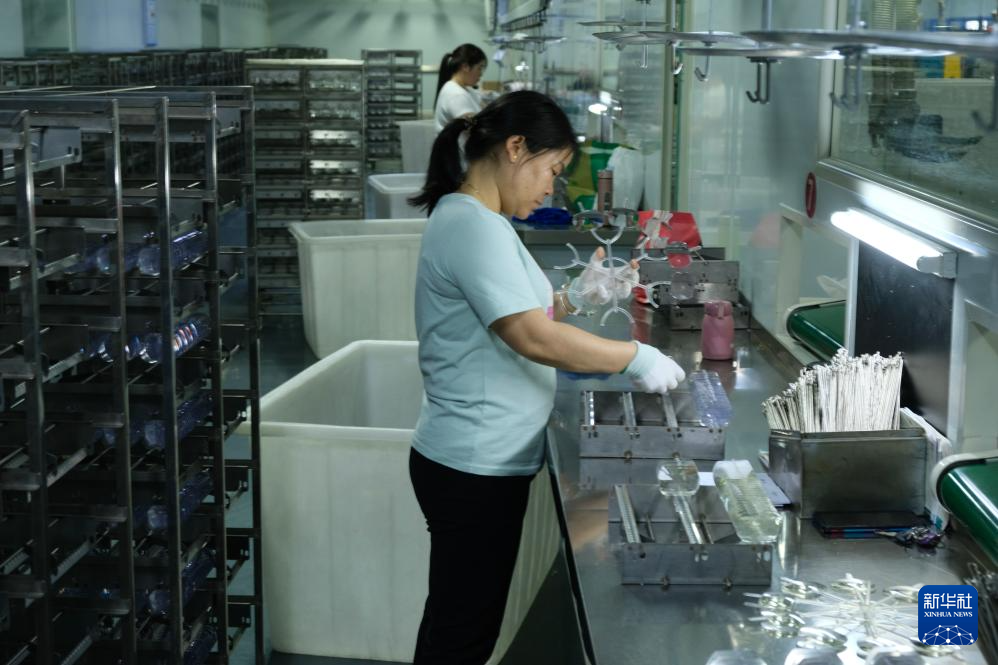 奉节县生态工业园区一家眼镜工厂的生产车间中,工人正在操作。新华社记者吴楠 摄