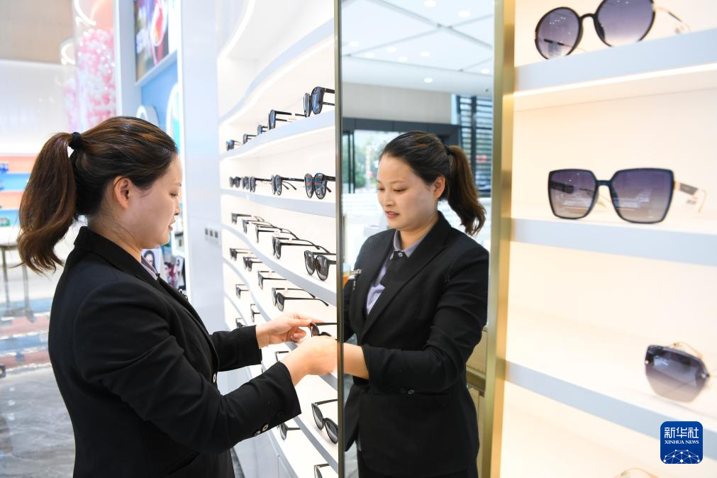 奉节一家眼镜店中,店员正在整理货品。新华社记者王全超 摄