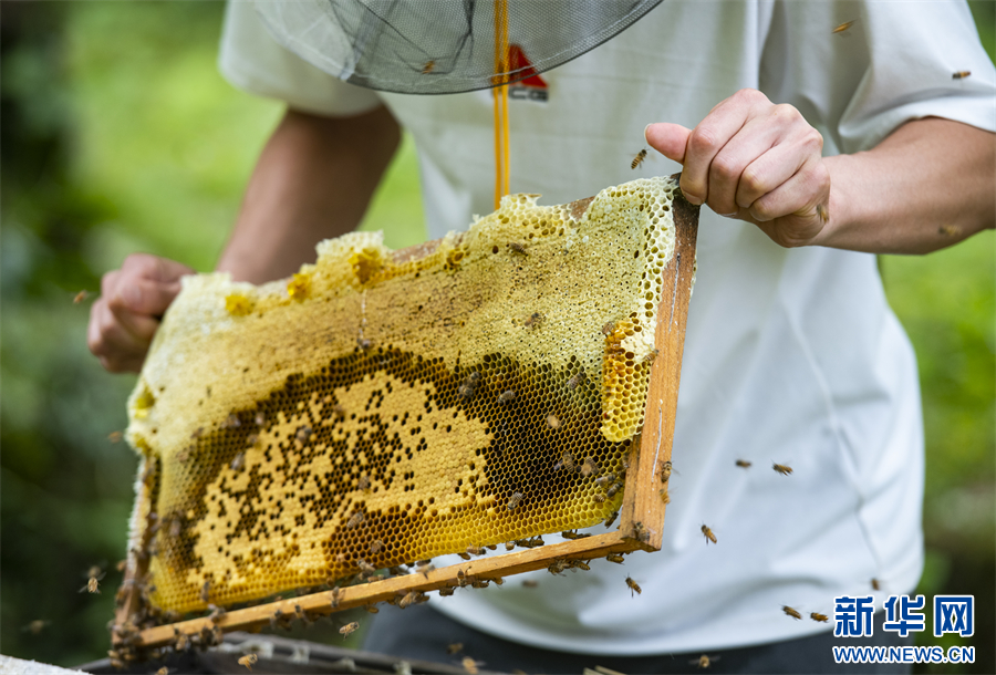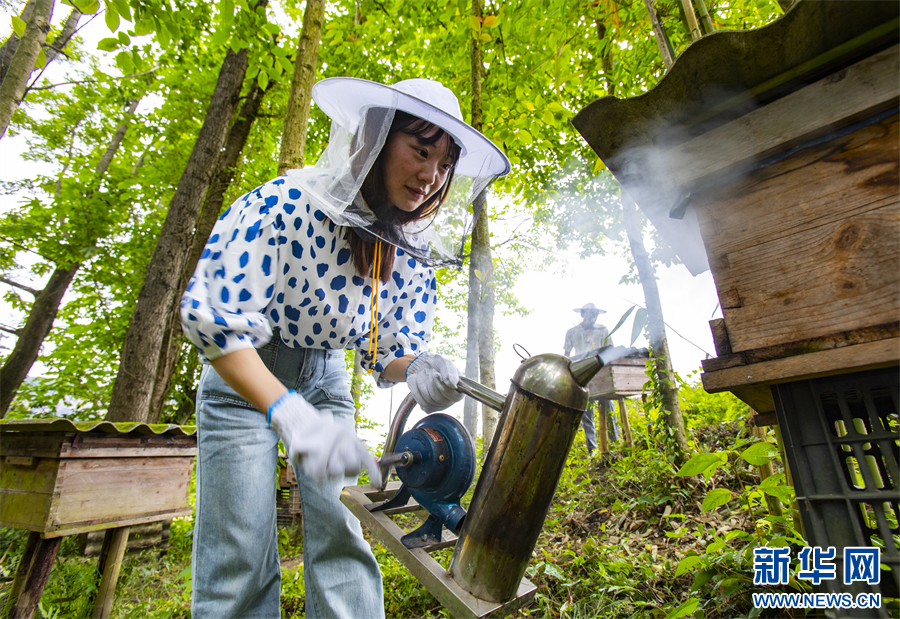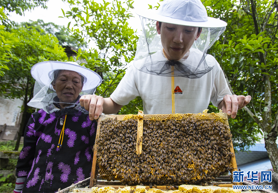 大学毕业后,丁星回到家乡,重拾外公外婆的手艺,在白土镇五龙村、联盟村发展养蜂这一“甜蜜事业”。新华网发(冉孟军 摄)