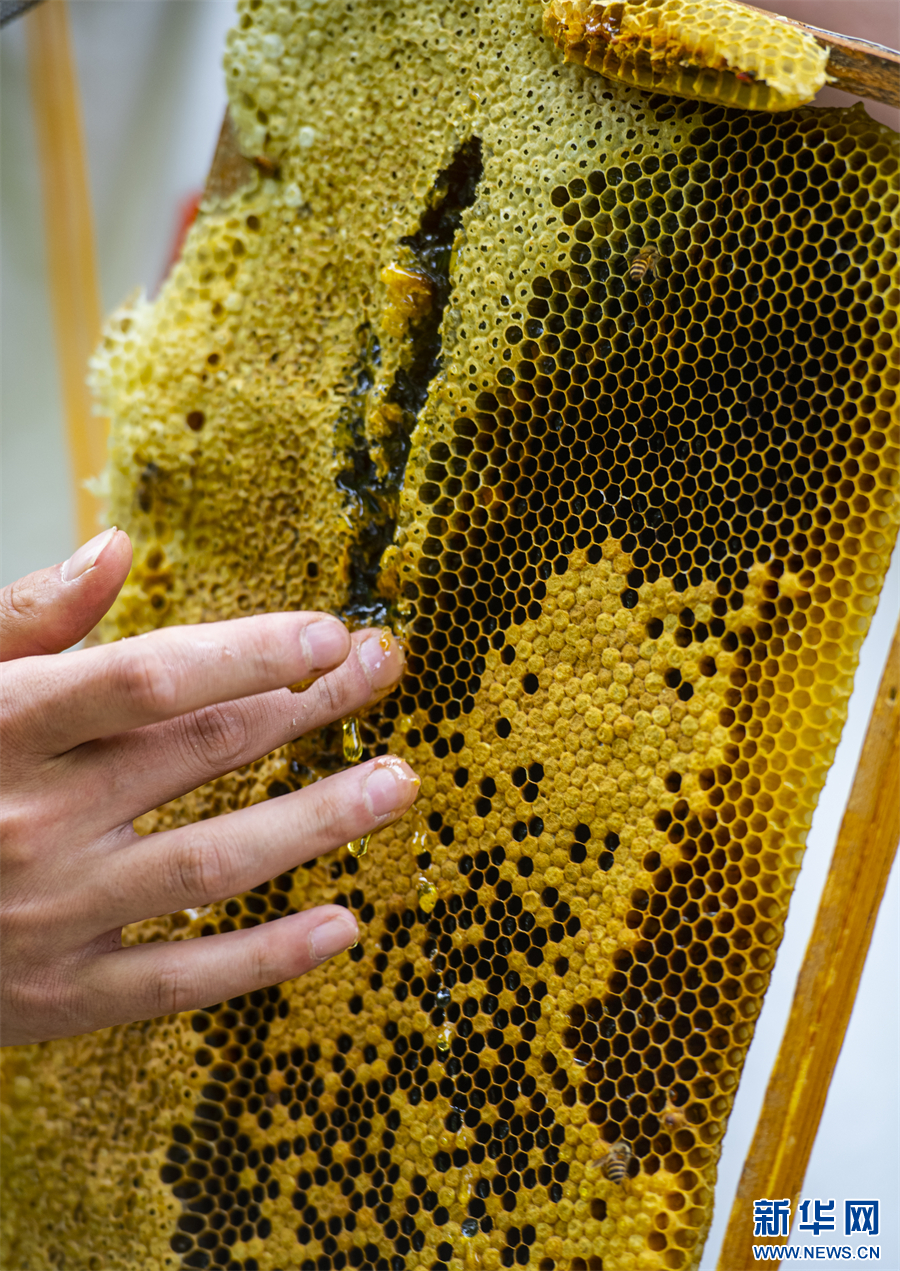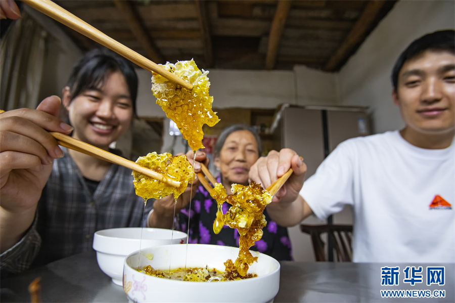 网上销售、注册商标……年轻人还将老一辈的“甜蜜事业”提档升级。每年仅养蜂收入就有5万元左右,日子越过越甜。新华网发(冉孟军 摄)