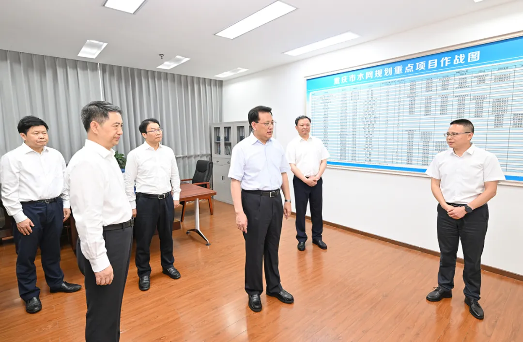 6月13日上午,在市水利局,市委书记袁家军了解全市水网布局、重点项目建设和水旱灾害防御等工作。记者 苏思 摄/视觉重庆