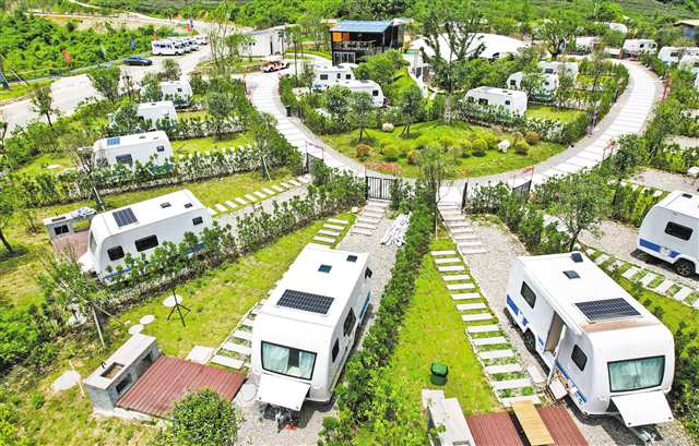 6月14日,垫江县沙坪镇东印山投用不久的房车露营基地风景宜人。