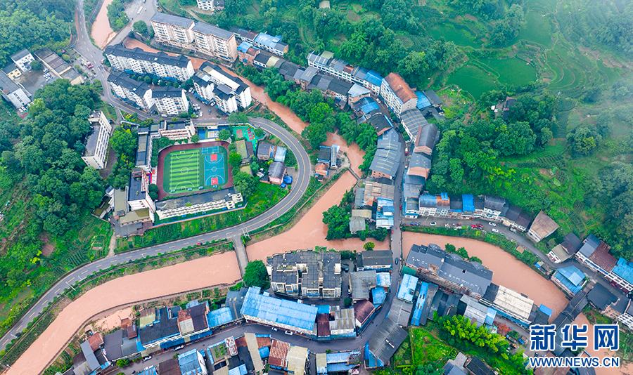 6月21日,重庆市南川区太平场镇水位上涨。新华网发(甘昊旻 摄)