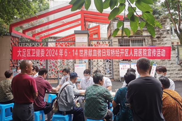 为感谢献血者的无偿献血行为,呼吁更多公众加入无偿献血者队伍,近日,双桥经开区人民医院组织医护人员在黄桷社区开展健康义诊宣传活动。